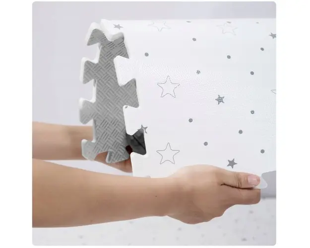 Acest covoras unic din spuma ii va oferi copilului confortul necesar in timp ce se joaca.Salteaua din spuma Ricokids este formata din 9 puzzle-uri mari cu stele pe care le puteti pune impreuna cu copi Produsul cu denumirea Salteluta de joaca 150 x 150 cm Ricokids 7496 Gri cu stelute face parte din brandul Silikids, se afla in categoria Costume carnaval copii si subcategoria