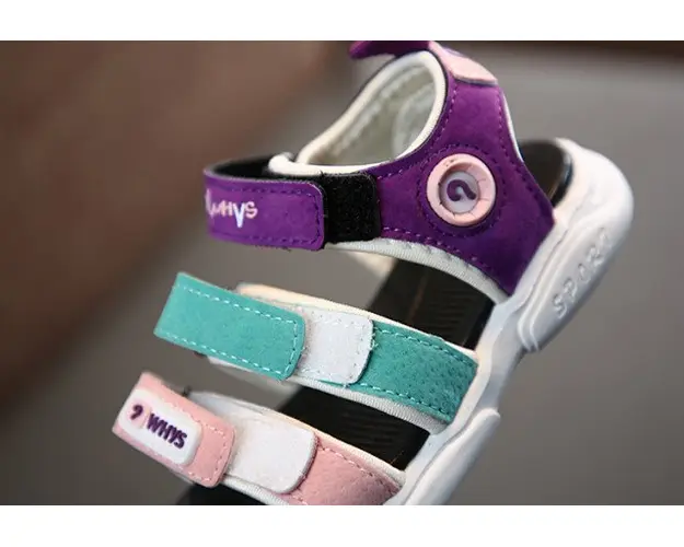 Sandale pentru fetite, cu barete ajustabile, colorate in nuante de mov, roz si turcoaz, se inchid intr-o parte cu arici. Material: piele intoarsa Talpa: flexibila, din cauciuc Marimi: 21 (12,5 cm lungime talpa interior) 22 (13 cm lungime talpa interior) 23 (13,5 cm lungime talpa interior) 24 (14,5 cm lungime talpa interior) 25 (15 cm lungime talpa interior) Produsul cu denumirea Sandale cu barete mov, roz zi turcoaz face parte din brandul Superfinish, se afla in categoria Tetine si subcategoria