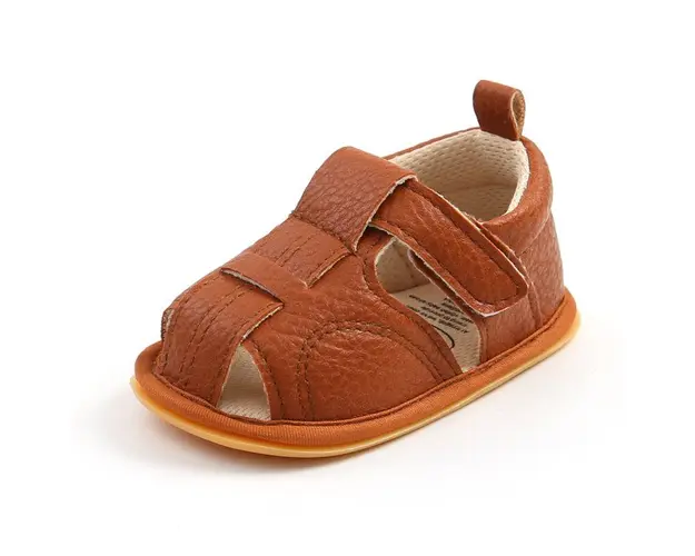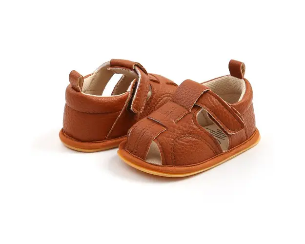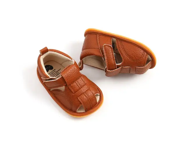 Marimi: 3-6 luni (lungime talpita 11 cm) 9-12 luni (lungime talpita 12 cm) 12-18 luni (lungime talpita 13 cm) Sandale pentru baietei, din piele ecologica, inchise in fata si la spate, se inchid cu bareta cu arici intr-o parte. Culoare: maro Talpa este din cauciuc moale, flexibil. Produsul cu denumirea Sandale maro inchise in fata si la spate face parte din brandul Superfinish, se afla in categoria Barbie si subcategoria