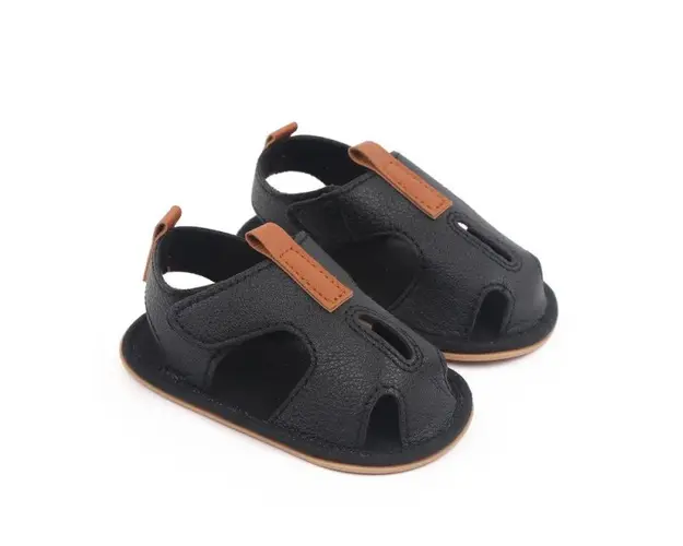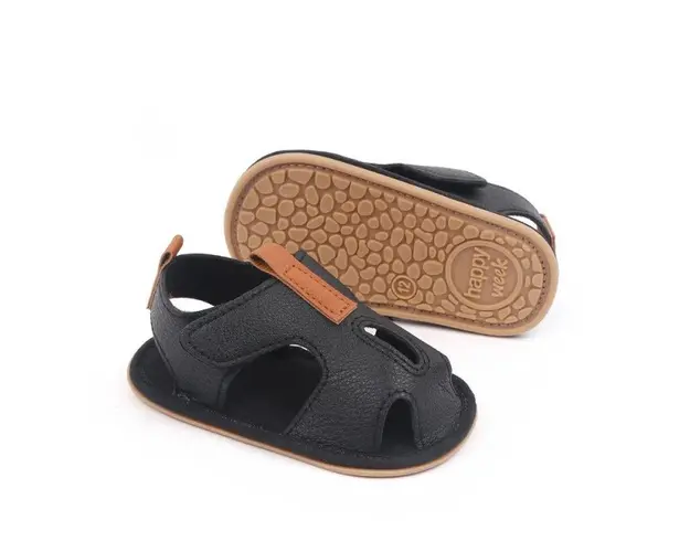 Marimi: 3-6 luni (lungime talpita 11 cm) 9-12 luni (lungime talpita 12 cm) 12-18 luni (lungime talpita 13 cm) Sandale pentru baietei, din piele ecologica, inchise in fata, se inchid cu bareta cu arici intr-o parte. Culoare: negru Talpa este din cauciuc moale, flexibil. Produsul cu denumirea Sandale negre pentru baietei - Kant face parte din brandul Superfinish, se afla in categoria Barbie si subcategoria