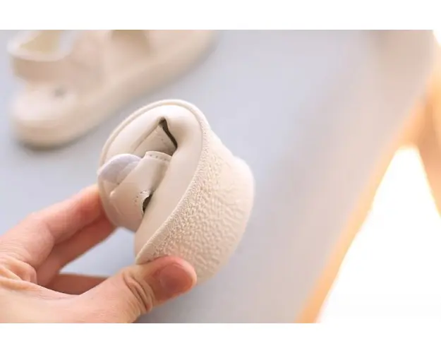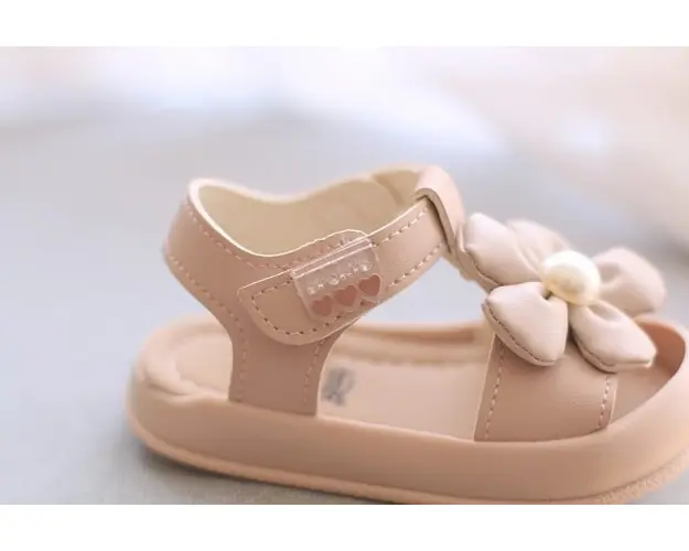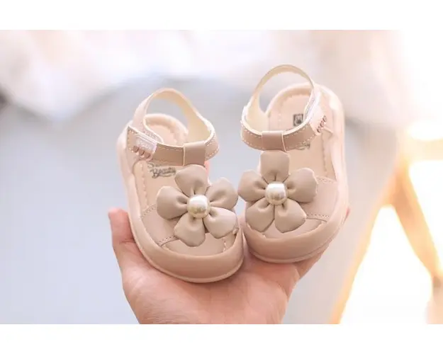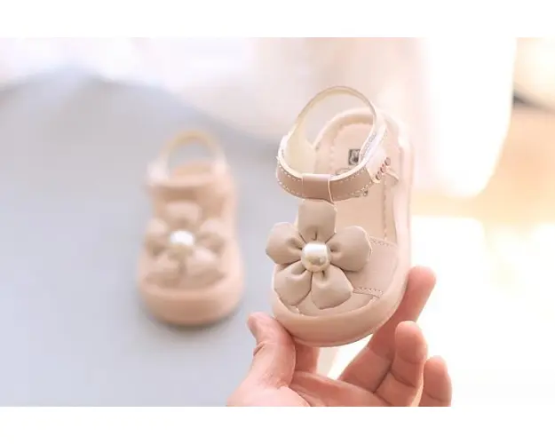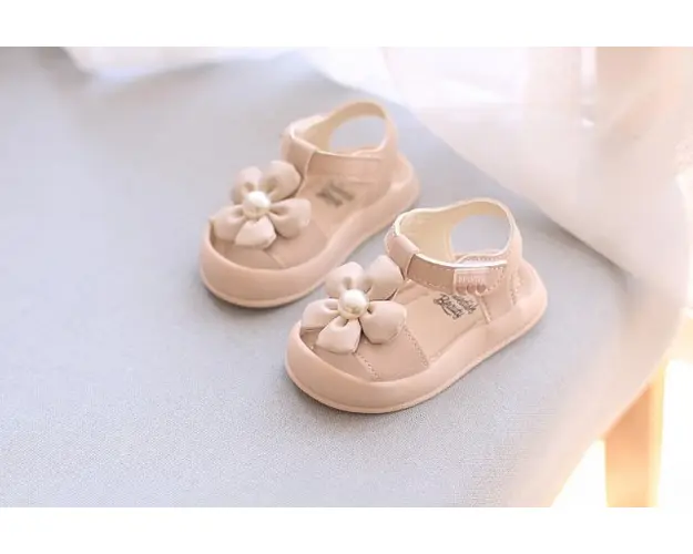 Sandale pentru fetite, din material tip piele ecologica, prevazute in fata cu protectie pentru degetele. Se inchid cu bareta cu arici intr-o parte. In fata au aplicata o floare cu perluta. Culoare: roz pal Talpa: flexibila si moale, din cauciuc Marimi: 21 (lungime talpita in interior 12,5 cm) (marime producator 16) 22 (lungime talpita in interior 13 cm) (marime producator 17) 23 (lungime talpita in interior 13,5 cm) (marime producator 18) 24 (lungime talpita in interior 14 cm) (marime producator 19 si 22) 25 (lungime talpita in interior 14,5 cm) (marime producator 20 si 23) 26 (lungime talpita in interior 15,5 cm) (marime producator 24, 25 si 26) Produsul cu denumirea Sandale roz pal pentru fetite - Beauty face parte din brandul Eurobaby, se afla in categoria Tetine si subcategoria