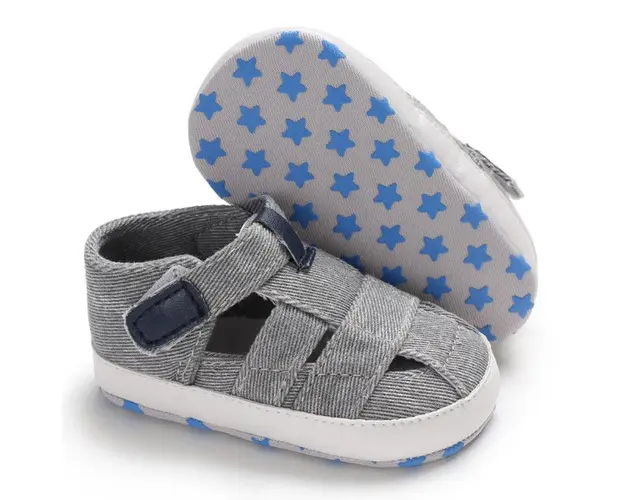 Marimi: 3-6 luni (lungime talpita 10,5 cm) 6-9 luni (lungime talpita 11,5 cm) 9-12 luni (lungime talpita 12,5 cm) Sandalute pentru baietei, cu barete, inchise in fata, se inchid cu bareta cu arici intr-o parte. Culoare: gri Material: textil Talpa: textil cu inscriptie antiderapanta Produsul cu denumirea Sandalute gri inchise in fata face parte din brandul Sevibebe, se afla in categoria Barbie si subcategoria
