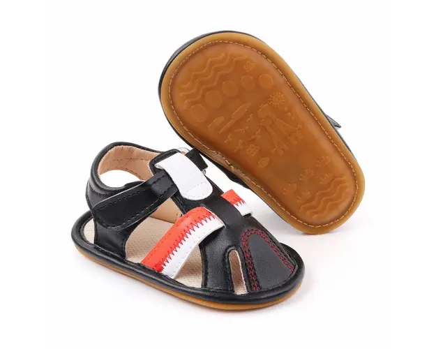 Marimi: 3-6 luni (lungime talpita 11 cm) 9-12 luni (lungime talpita 12 cm) 12-18 luni (lungime talpita 13 cm) Sandale pentru baietei foarte comode, inchise in fata, cu barete, se inchid cu arici intr-o parte pentru a facilita incaltarea cu usurinta. Culoare: negru cu dunga alba si portocalie Material: tip piele ecologica Talpa: cauciuc flexibil Produsul cu denumirea Sandalute negre pentru baietei face parte din brandul Eurobaby, se afla in categoria Barbie si subcategoria
