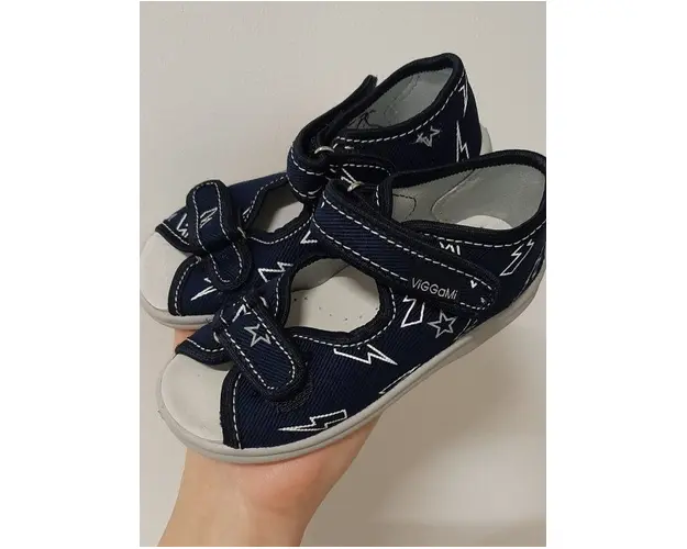 Marimi: 18,5 (lungime talpita in interior 11,5 cm) 19 (lungime talpita in interior 12 cm) 20 (lungime talpita in interior 12,5 cm) 21 (lungime talpita in interior 13 cm) 22 (lungime talpita in interior 14 cm) 23 (lungime talpita in interior 14,5 cm) 24 (lungime talpita in interior 15 cm) 25 (lungime talpita in interior 15.5 cm) Sandalute bleumarine pentru baietei, imprimati cu semnul fulger, se inchid bareta cu arici. Talpa este din cauciuc, exteriorul din material textil. In interior au insertie din piele naturala, prevazuta cu carbune activ pentru protectia picioruselor impotriva bacteriilor, micozelor, transpiratiei si mirosului neplacut. Fabricat in Polonia Produsul cu denumirea Sandalute pentru baietei - Fulgerica face parte din brandul Gigamic, se afla in categoria Barbie si subcategoria