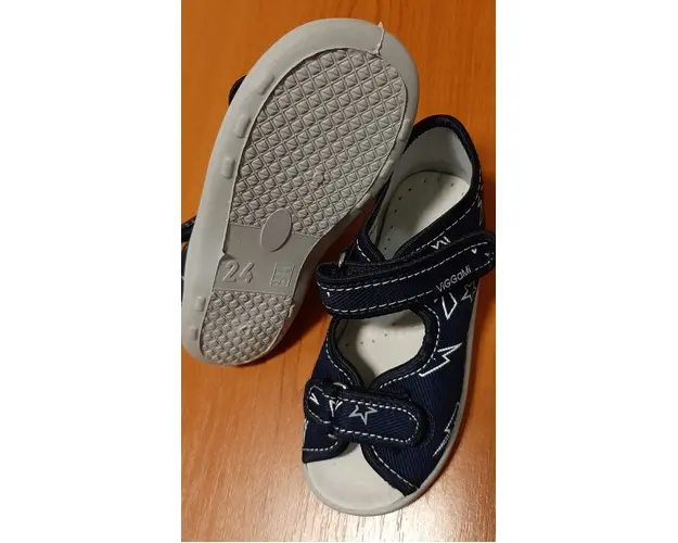 Marimi: 18,5 (lungime talpita in interior 11,5 cm) 19 (lungime talpita in interior 12 cm) 20 (lungime talpita in interior 12,5 cm) 21 (lungime talpita in interior 13 cm) 22 (lungime talpita in interior 14 cm) 23 (lungime talpita in interior 14,5 cm) 24 (lungime talpita in interior 15 cm) 25 (lungime talpita in interior 15.5 cm) Sandalute bleumarine pentru baietei, imprimati cu semnul fulger, se inchid bareta cu arici. Talpa este din cauciuc, exteriorul din material textil. In interior au insertie din piele naturala, prevazuta cu carbune activ pentru protectia picioruselor impotriva bacteriilor, micozelor, transpiratiei si mirosului neplacut. Fabricat in Polonia Produsul cu denumirea Sandalute pentru baietei - Fulgerica face parte din brandul Gigamic, se afla in categoria Barbie si subcategoria