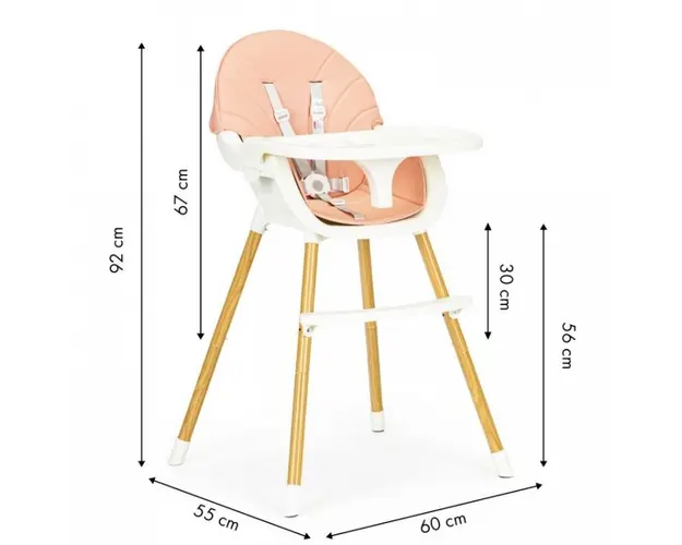 Scaunul este reglabil pe inaltime. Puteti desuruba cu usurinta picioarele si suportul pentru picioare, datorita carora scaunul inalt va fi transformat intr-un scaun inferior.Daca copilul dvs. devine i Produsul cu denumirea Scaun de masa 2 in 1 Ecotoys HA-004 roz face parte din brandul Mochtoys, se afla in categoria Animale si subcategoria