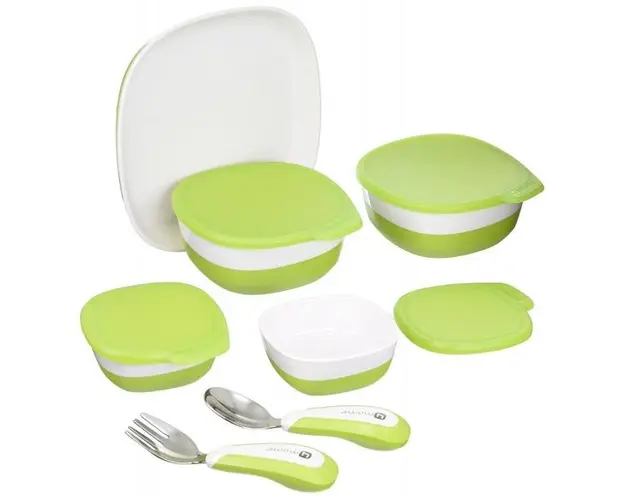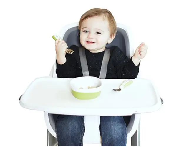 Scaun de masa 4moms White-Grey+Set farfurii si tacamuri Cadou
