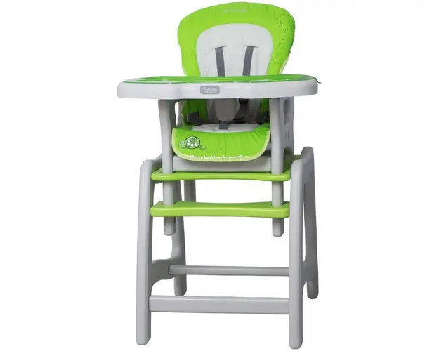 Acest scaun inovativ va fi util nu doar pe parcursul hranirii ci si mai tarziu cand copilul poate sta singur la masa.Dispune de o tavita dubla a carei distanta fata de copil poate fi reglata optional. Produsul cu denumirea Scaun de masa Coto Baby Stars Slimak Green face parte din brandul Eurobaby, se afla in categoria Animale si subcategoria