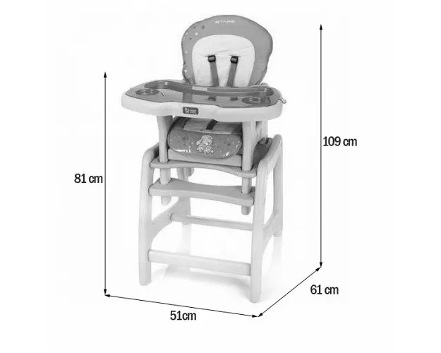 Acest scaun inovativ va fi util nu doar pe parcursul hranirii ci si mai tarziu cand copilul poate sta singur la masa.Dispune de o tavita dubla a carei distanta fata de copil poate fi reglata optional. Produsul cu denumirea Scaun de masa Coto Baby Stars Slimak Green face parte din brandul Eurobaby, se afla in categoria Animale si subcategoria
