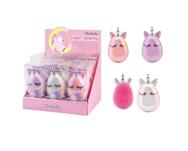 Pieptanati cu stil parul copiilor dumneavoastra cu Peria Martinelia Sweet Dreams Unicorn - o perie pentru copii intr-o minunata culoare sidefata si in forma de unicorn, care, datorita designului ergon Produsul cu denumirea Set 12 perii de par pentru copii Sweet Dreams Unicorn Martinelia face parte din brandul Miniland, se afla in categoria Igiena si ingrijire si subcategoria