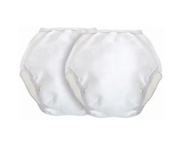 Chilotul de antrenament refolosibil este impermeabil si foarte confortabil.Are tei straturi material impermeabil(fara PVC),material absorbant(fibre), bumbac (tip prosop) la interior .Pot fi spalati la Produsul cu denumirea Set 2 chilotei antrenament toaleta (10-15 kg) Sevi Baby Alb face parte din brandul Sevibebe, se afla in categoria Igiena si ingrijire si subcategoria