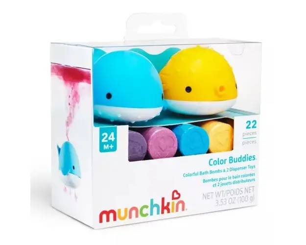 Apa de baie colorata este un truc distractiv pentru a a convinge orice copil sa intre in cada. O completare geniala la rutina de baie, Colour Buddiestrade sunt tablete de baie prietenoase pentru copii Produsul cu denumirea Set 2 dispensere pentru baie si 20 tablete Munchkin Colour Buddies 24L+ face parte din brandul Trunki, se afla in categoria Igiena si ingrijire si subcategoria