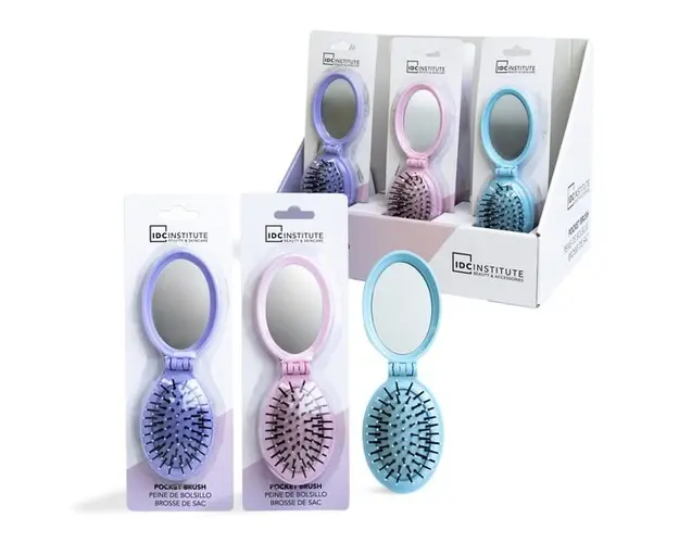 Perie pliabila cu oglinda integrata IDC Institute.Ideala pentru calatorii, sport, de purtat in geanta. Prevazuta cu protectii pentru protejarea scalpului.Set cu 12 bucati in nuantenbsppastel roz, mov, Produsul cu denumirea Set 24 bucati perie pliabila cu oglinda pastel IDC Institute 18301RB face parte din brandul Idc institute, se afla in categoria Igiena si ingrijire si subcategoria