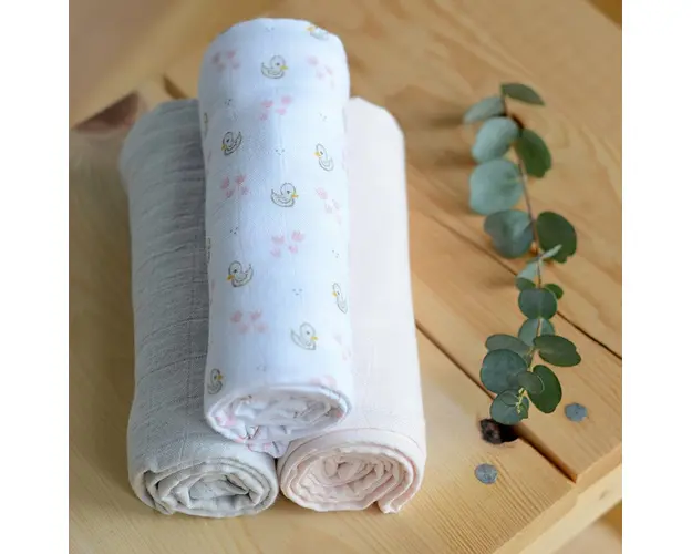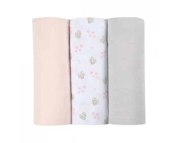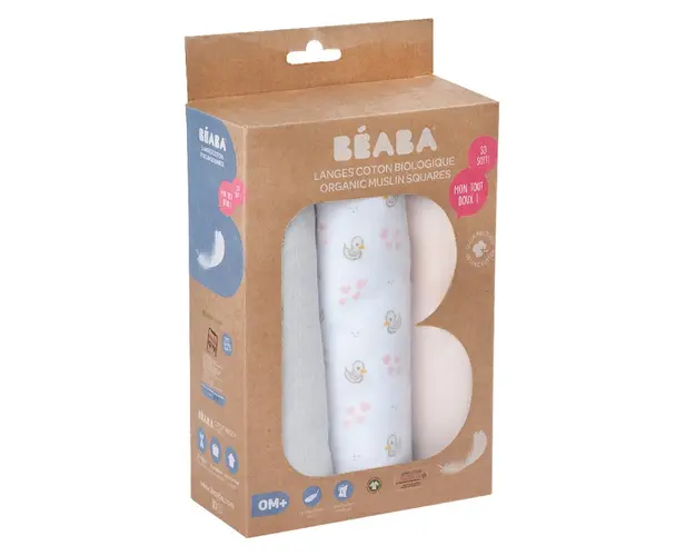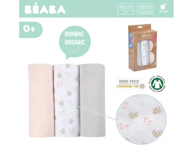 Set 3 museline Beaba bumbac organic 70x70 cm swan pink