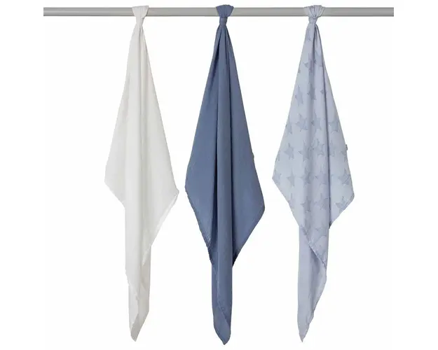 Set 3 paturici de muselina albastru Clevamama 3540