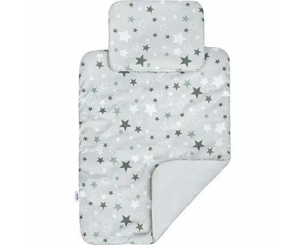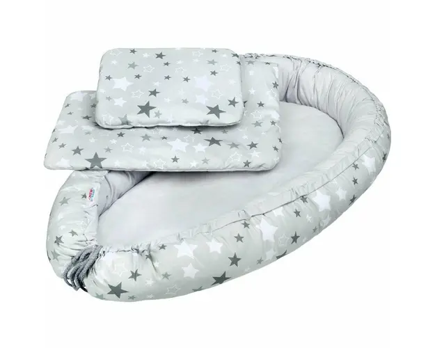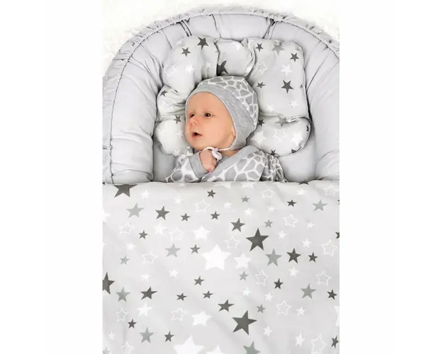 Set 3 piese New Baby Baby Nest cu paturica si pernuta WhiteGrey stars