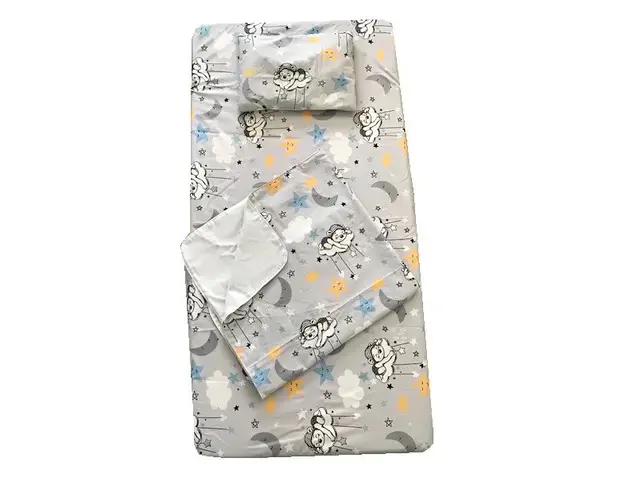 Setul contine trei piese foarte potrivite pentru orice anotimpnbsp- cearsaf cu elastic pe colturi potrivit pentru saltea de 160x80 cm - se fixeaza bine pe saltea- paturica dubla de vara de 150x115 cm- Produsul cu denumirea Set 3 piese paturica cu cearsaf si pernuta 160x80 cm Ursuleti gri face parte din brandul Ecada, se afla in categoria Costume carnaval copii si subcategoria