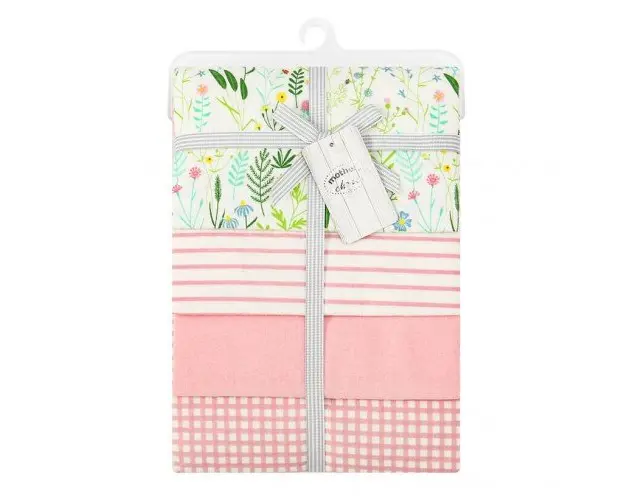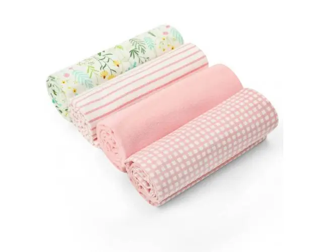 Set 4 paturici subtiri din bumbac pentru bebelusi VerdeRoz
