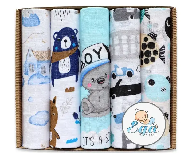 Set 5 scutece din muselina 70x80 cm Eco Box Blue Boy