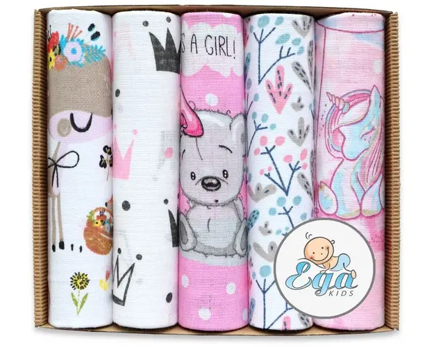 Set 5 scutece din muselina 70x80 cm Eco Box Pink Girl