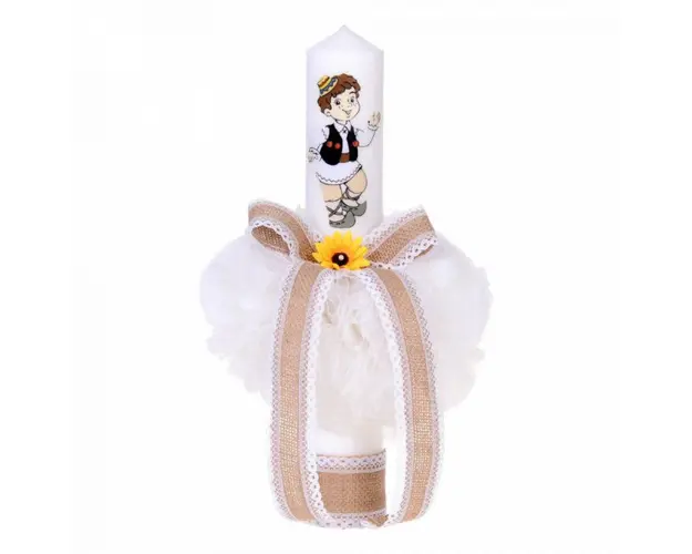 Set botez traditional baietel, trusou botez landou, lumanare si costum popular baiat, Denikos® 968