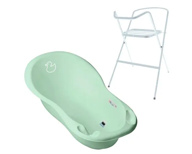 Cadita de baie bebe cu termometru este foarte practica, sigura si confortabila pentru copil.Este prevazuta cu un termometru pentru a masura temperatura exacta a apei din cadita. Este confectionata din Produsul cu denumirea Set Cadita 86 cm cu suport metalic Duck Mint face parte din brandul Ok baby, se afla in categoria Igiena si ingrijire si subcategoria