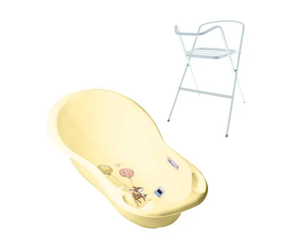 nbspCadita de baie bebe cu termometru este foarte practica, sigura si confortabila pentru copil.Este prevazuta cu un termometru pentru a masura temperatura exacta a apei din cadita. Este confectionata Produsul cu denumirea Set Cadita 86 cm cu suport metalic Forest Galben face parte din brandul Ok baby, se afla in categoria Igiena si ingrijire si subcategoria