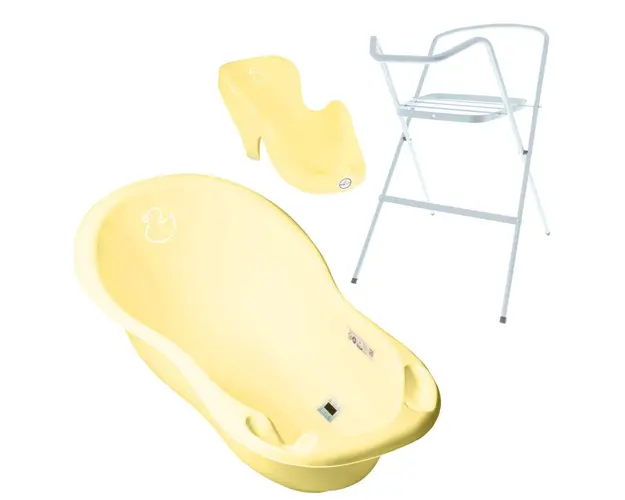 Model ergonomic pentru un confort sporit atat pentru parinte si copil nbspCadita este dotata cu un senzor care indica temperatura apei si semnaleaza prin culori daca apa este ideala, rece sau prea cal Produsul cu denumirea Set Cadita 86 cm cu suport metalic si suport anatomic Duck Galben face parte din brandul Ok baby, se afla in categoria Igiena si ingrijire si subcategoria