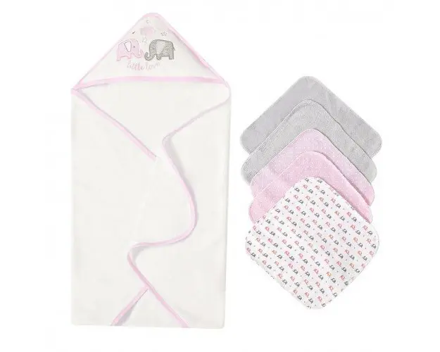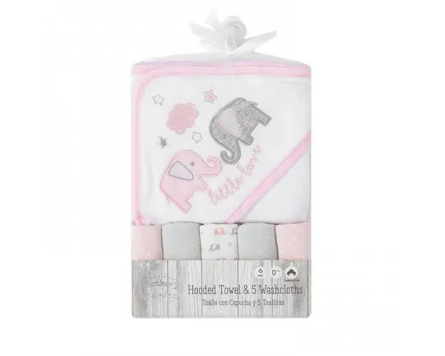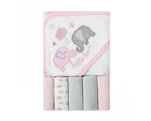 Set cadou bebelusi cu 5 mini prosopele si prosop de baie cu gluga Little Love