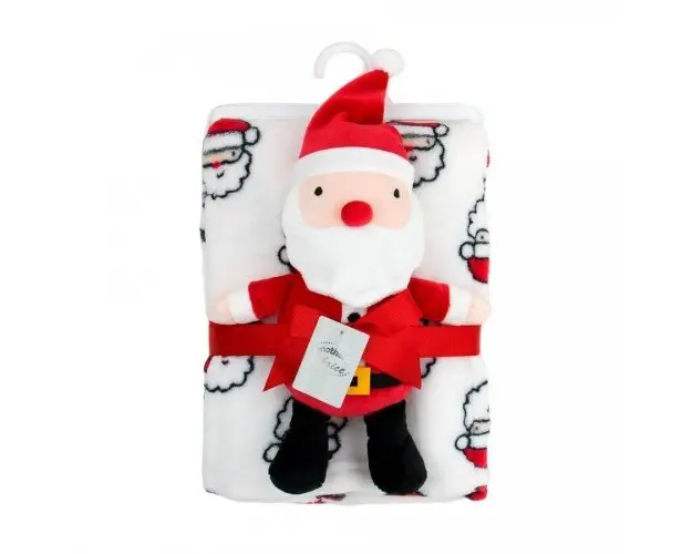 Set cadou Craciun cu paturica din fleece si jucarie Santa