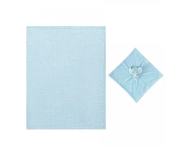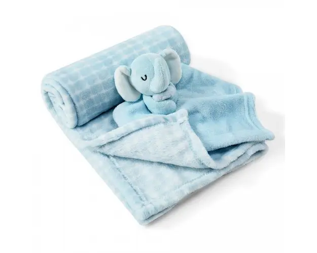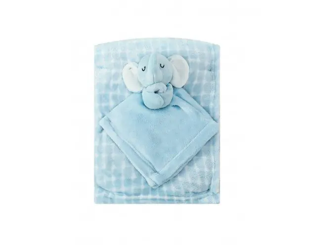 Set cadou pentru bebelusi cu paturica din fleece si jucarie elefantel bleu