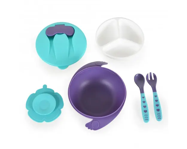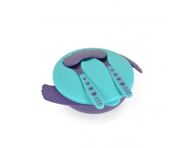 Bolul, furculita si lingura ajuta la trecerea cu usurinta de la hranirea cu lapte la hranirea cu alimente bdquosoliderdquo pentru copilul dumneavoastra.Produsul are o baza antiderapanta, contribuind l Produsul cu denumirea Set castron cu lingurita si furculita Cangaroo Jelly Blue face parte din brandul Recaro, se afla in categoria Animale si subcategoria