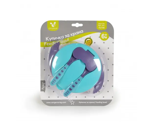 Set castron cu lingurita si furculita Cangaroo Jelly Blue