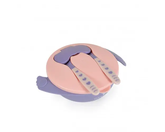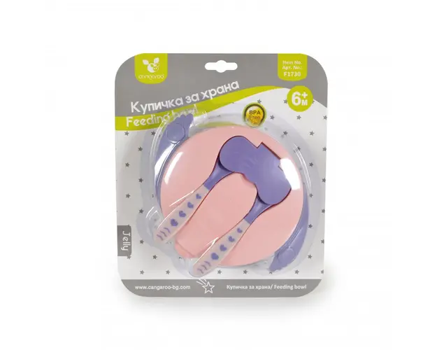 Set castron cu lingurita si furculita Cangaroo Jelly Pink