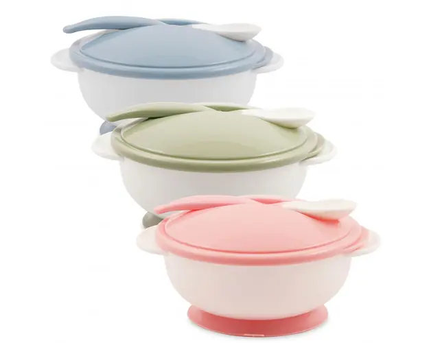 Set castron cu ventuza capac si lingurita Moonlight Blue