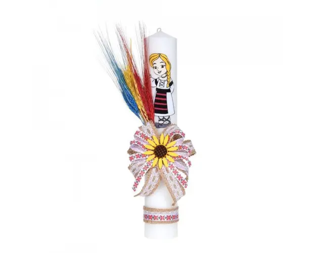 Set costum national fetita, trusou botez landou si lumanare, decor traditional, Denikos® C9284