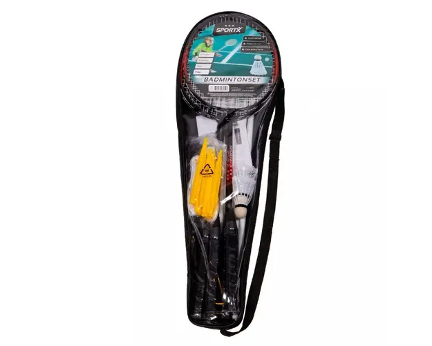 Set de joaca badminton pentru exterior, Van Der Meulen SportX, pentru adultii si copii, cu fileu demontabil facil, in husa transport, 4 palete si 2 fluturasi inclusenbspSetul de joc badminton este per Produsul cu denumirea Set de joaca badminton Van Der Meulen SportX face parte din brandul Spartan, se afla in categoria Jucarii magnetice si subcategoria