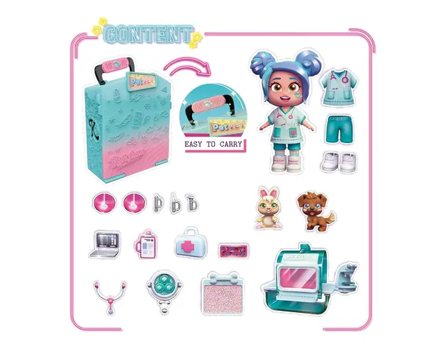 Caracteristici Set de joaca Kookyloos Clinica Veterinara: Faceti cunostinta cu papusa KookyLoos Carla! Toate animalutele sunt pe maini bune pentru ca medicul veterinar Carla le va ingriji Carla este personaj KookyLoos exclusiv si o poti gasi doar in acest set Setul include accesorii specifice pentru a trata animalele de companie Ajut-o pe Carla sa trateze animalele la clinica veterinara! In scanerul special, vei putea vedea daca pacientul s-a vindecat sau il poti folosi drept masa de examinare Poti lua cu tine jucaria oriunde fiindca setul se strange sub forma unei gentute Papusa KookyLoos isi poate schimba cele 3 expresii faciale printr-un singur click Produsul cu denumirea Set de joaca Kookyloos Clinica Veterinara face parte din brandul , se afla in categoria Jucarii magnetice si subcategoria