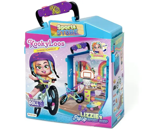 Caracteristici Set de joaca Kookyloos Magazin articole sportive: Fa cunostinta cu Lizzie, papusa exclusiva KookyLoos! Lizzie este cea mai atletica papusa KookyLoos si vrea sa ii ajute pe ceilalti cu cunostintele sale despre sport Daca iti plac sporturile, atunci cu siguranta trebuie sa treci pe la magazinul ei Lizzie te va invata sa mergi pe bicicleta si sa te dai cu skateboard-ul incercand trucuri pe rampa Invita si alte papusi KookyLoos la un joc de basket! Poti lua cu tine jucaria oriunde fiindca se strange sub forma unei gentute Papusa isi poate schimba cele 3 expresii faciale printr-un singur click Aduna toata colectia KookyLoos! Produsul cu denumirea Set de joaca Kookyloos Magazin articole sportive face parte din brandul , se afla in categoria Jucarii magnetice si subcategoria