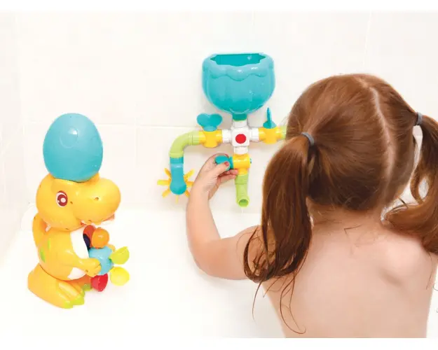 Un set de baie maxi pentru a descoperi efectele apeiDescoperiti acest kit acvatic distractiv pentru a va juca la baie Pachetul include un dinozaur mare, amuzant, un circuit modular de apa si un dino b Produsul cu denumirea Set jucarii de baie Dinozaur Ludi face parte din brandul Ludi, se afla in categoria Igiena si ingrijire si subcategoria