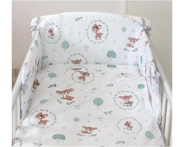 Set lenjerie din bumbac cu protectie laterala pentru pat bebe 120 x 60 cm Caprioara mica Amy
