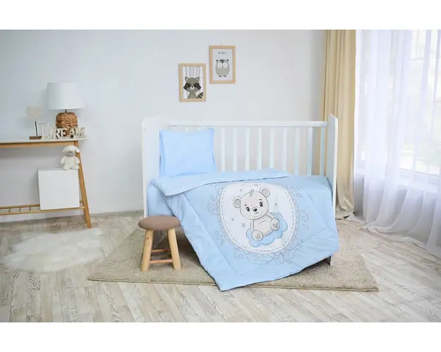 Set lenjerie pat 4 piese bumbac ranforce Little Bear Blue
