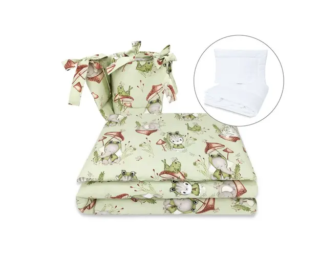Set lenjerie patut 5 piese Qmini cu pilota si perna din bumbac 120x60 cm Frogs