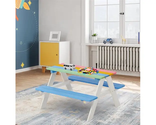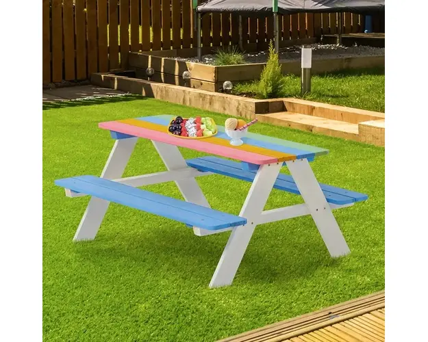 Set masuta de gradina cu bancute din lemn Ginger Home Rainbow