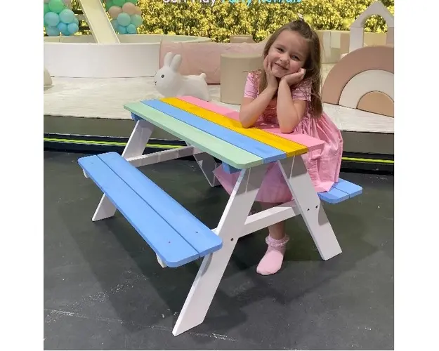 Setul de gradina pentru copii este potrivit pentru uz exterior si interior, cu un design atractiv multicolor.Masa de picnic GINGER HOME poate fi folosita atat in gradina, curte, balcon cat si in inter Produsul cu denumirea Set masuta de gradina cu bancute din lemn Ginger Home Rainbow face parte din brandul Dunster house, se afla in categoria Jucarii magnetice si subcategoria