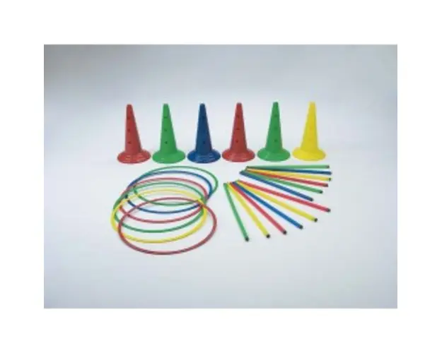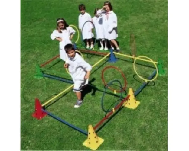Set motricitate Saltarello Mare Acest kit contine o gama larga de elemente care va permite sa creati combinatii infinite, in functie de spatiul disponibil si de imaginatia dumneavoastra.Acesta include:6 conuri cu 3 orificii (50 cm h)6 cercuri plate cu diametrul de ø 65 cm6 bete gimnastica (70 cm lungime)6 bete gimnastica (80 cm lungime) Culorile componentelor pot sa difere fata de imaginea de prezentare a produsului. Produsul cu denumirea Set motricitate Saltarello Mare face parte din brandul Active people, se afla in categoria Matematica si subcategoria