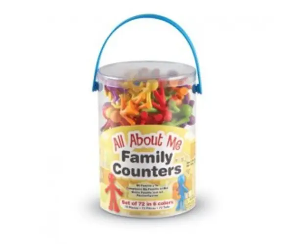 Caracteristici: ideal pentru discutiile pe teme de familie, identitate personala dar si pentru numarat, sortat si potrivit setul include 72 de piese din care pot fi formate familii alcatuite din 6 membri: mama, tata, fetita, baietel, bebelus si animal de companie piesele sunt disponibile in 6 culori: galben, rosu, portocaliu, verde, albastru si mov Dimensiune piese: 6,5 cm (cea mai mare piesa) 2,5 cm (cea mai mica piesa) Varsta recoamandata: 3 - 7 ani Produsul cu denumirea Set pentru sortat si numarat - familia mea (72 piese) face parte din brandul Learning resources, se afla in categoria Jocuri interactive si subcategoria