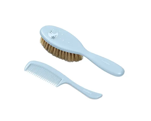Set perie par natural si pieptene- BabyOno Perie cu fir natural moale, ideal pentru parul delicat si scalpul nou nascutilor Antistatic Pieptene cu dinti rotunjiti ce protejeaza si maseaza scalpul c Produsul cu denumirea Set perie din par natural moale si pieptene Baby Ono Bleu face parte din brandul Ok baby, se afla in categoria Igiena si ingrijire si subcategoria