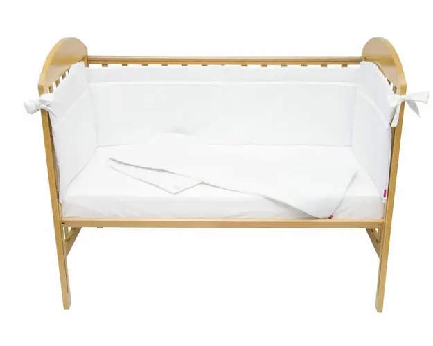 Set protectii patut KidsDecor alb cu dantela din bumbac 60x120 cm