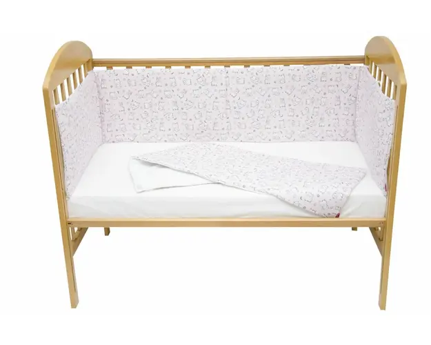 Set protectii patut KidsDecor din bumbac Baby Bear roz 63x127 cm